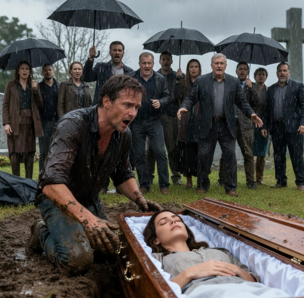 When the boy screamed again, pleading for them to open the grave, Henry snapped. He dropped to his knees and began digging into the wet soil with his bare hands. Gasps rippled through the crowd. Some tried to stop him, but the terror on Oliver’s face froze them all.