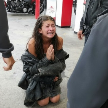 Back at the gas station, we stood by Ashley as EMTs arrived. The media had arrived too. What began as “biker gang detained” now flipped to “biker club rescues trafficking victims.”