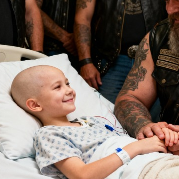 Over the next three months, forty bikers took turns sitting by Katie’s bedside, holding her hand through every restless night and quiet moment. These leather-clad strangers became her family, filling her final days with love, laughter, and the sense of belonging she desperately craved. They painted her nails, sang lullabies, shared stories, and created memories no child should have to live without.