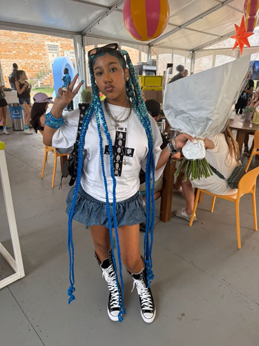 Her looks featured temporary face tattoos, bright turquoise braids, black-painted teeth, colorful contacts, and detailed nail art. North captioned her post, “fake piercings and fake tatts 4 life,” clarifying that the aesthetic was all in good fun and purely for creative play.